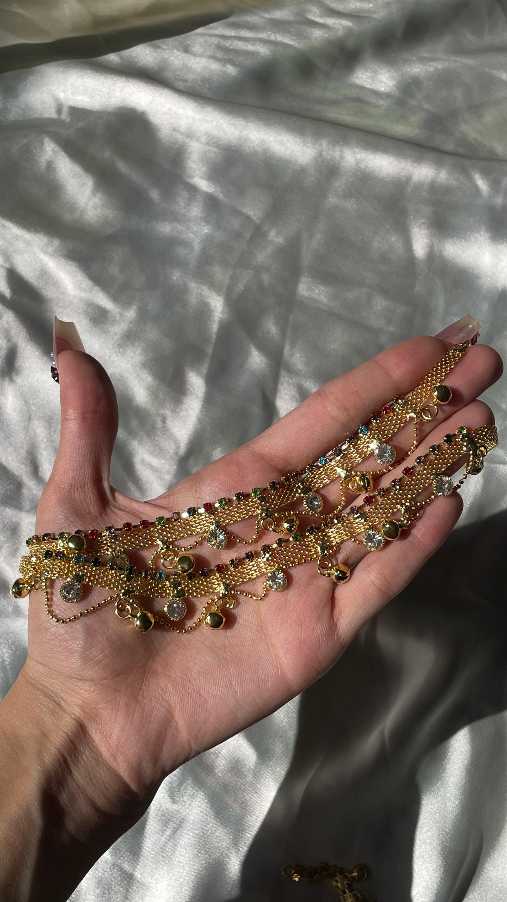 - Multicolor Stone Detailing – Accented with tiny red, green, blue, and crystal stones that add vibrant festive charm.